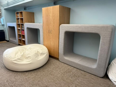 What is most unique about this Sensory Library is multiple adaptive seating options and cozy, quiet reading nooks that offer every student their own comfortable spot.
